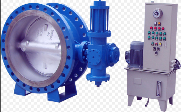 1)开阀:液控蝶阀开发时 ,利用液控站和举升油缸的作用力,通过举臂,重锤杆、阀轴等零件,带动碟板作90°旋转。与此同时,液控站和举升油缸的作用力也通过举臂和重锤杆将重锤垂直提升,将重锤的重力转换为势能,为关阀做好动力准备。