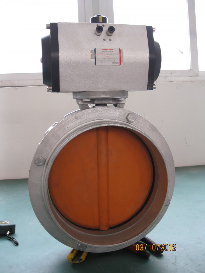 - 气动粉体蝴蝶阀采用重力浇铸而成的半阀体组成,半阀体为铝合金材料,旋转阀板采用高分子材料制作,具有良好的密封性。顶部及底部相同的圆法兰,具有一个顶部法兰以及一个折边部件,适用于一根柔性套管。