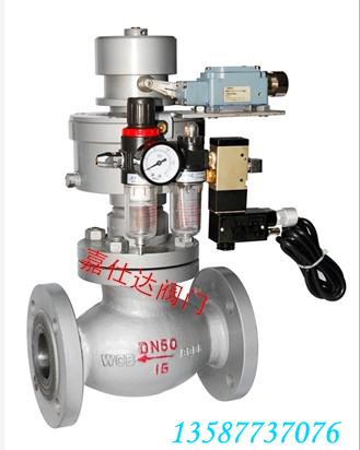 4、双作用式工作原理:当控制器按事先编好的程序对某个电磁换向阀输出一个电信号,该电磁换向阀动作,使带压仪表气源通过电磁换向阀的切换进入气动执行机构的气缸下腔推动活塞向上运动,活塞带动阀杆,阀杆提动阀芯使阀门开启,切断换向阀电信号,使活塞反向运动使阀门关闭,这种阀门配置称为常闭式。