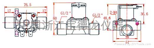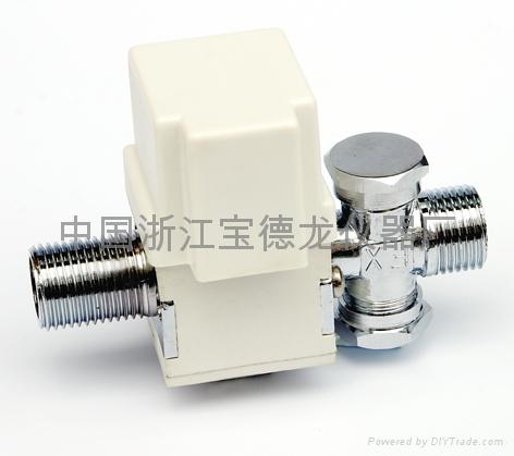 应用于自动控制系统中:太阳能自动上水、红外线感应洁具、淋浴器等开关控制,该进水端与出水端口成180°角度,称直通阍或直线阀。