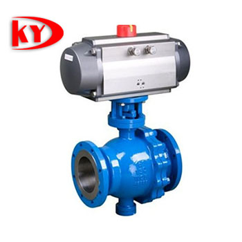 647型气动固定式球阀是新一代高性能球阀,适用于长输管线和一般工业管线,其强度、安全性、耐恶劣环境性等在设计时进行了特殊考虑,适用于各种腐蚀性和非腐蚀性介质。它与浮动球阀相比,工作时,阀前流体压力在球体上产生的作用力全部传递给轴承,不会使球体向阀座移动,因而阀座变形小,密封性能稳定、使用寿命长,适用于高压、大口径场合。先进的弹簧预阀座组件,具有自紧特性,实现上游密封。每阀有两个阀座,每个方向都能密封因而安装没有流向限制,是双向。本阀有二块式和三块式两种阀体结构,中法兰用螺栓连接,密封采用增强聚四氟乙烯镶入不锈钢圈内,钢圈后部设有弹簧保证阀座紧贴球体,保持密封。上下阀杆均设有PTFE轴承,减少磨擦,操作省力,小轴底部没有调整片,保证球与密封圈的接处位置。采用全通径的结构使阀门流量孔么与管线内径一致,以便管线清扫。