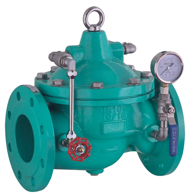 停泵后,介质倒流,阀门上腔压力大于下腔压力,阀瓣下落关闭。而控制回水进入膜片上腔的速度,就可以调整阀门的关闭速度,从而达到缓闭的目的。