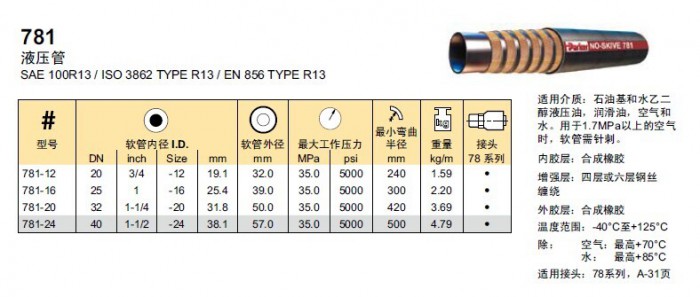 PARKER派克 781-X液压胶管现货
