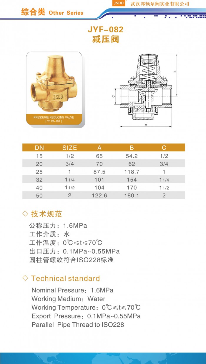 名称:可调式减压阀 ; 材料:黄铜; 规格:DN15—DN50