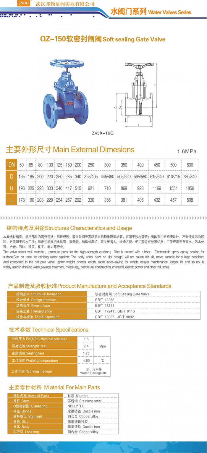 名称:软密封闸阀 ; 材料:铸铁; 规格:DN50—DN600