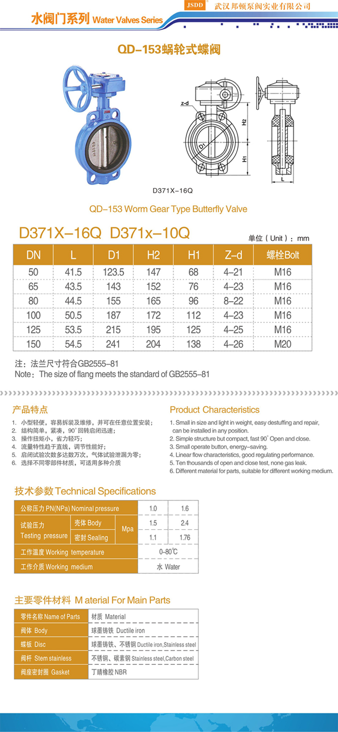 名称:涡轮对夹蝶阀 ; 材料:铸铁; 规格:DN50—DN300