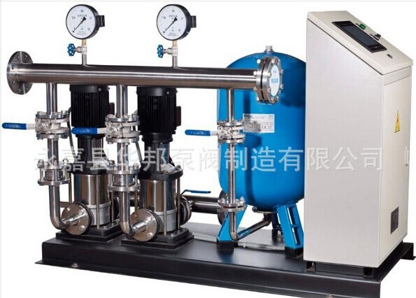 华邦HB系列全自动变频供水设备是一种用微机控制的变频调速供水设备。具有变量供水时控制水泵的出口压力为恒压或变压的基本功能。本设备通过安装在水泵出口管道上的远传压力表,将压力信号转换成标准电信号输入微机,经比较运算等处理后得到*佳控制参数,控制变频器和接触器组从而控制水泵机组的转速和台数,达到改善供水工况和节能之目的。该设备主要由水泵机组、测压稳压罐、压力传感器、变频控制柜等组成,能始终维持压力表压力(即用户管网水压)等于用户设定值。可用于一般生活或生产供水。供水系统组成方式有:1\与市政管网并网恒压供水,在供水压力可满足需要时,自动停运全部水泵。否则恒压供水设备起动,增大压力满足用水要求。2、附加小泵或气压罐为完全消除小流量或零流量供水电耗,可增加辅助小泵或辅助气压罐,当供水压力低时,自动停运主泵,使小泵或气压罐运行。采用智能控制器或可编程控制器(PLC)对变频泵组、稳压泵进行控制。
